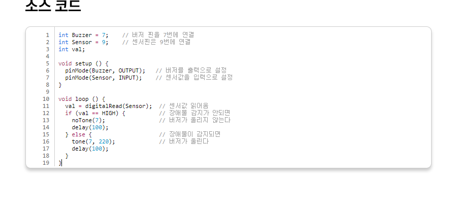 pinMode(Buzzer, OUTPUT); // 버저를 출력으로 설정