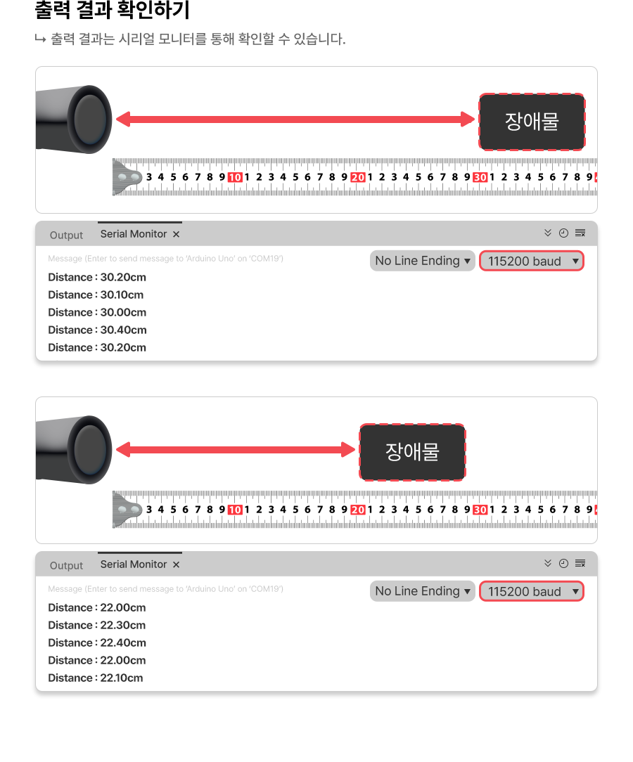 Serial.print("DIstance:"); // 물체와 초음파 센서간 거리를 표시