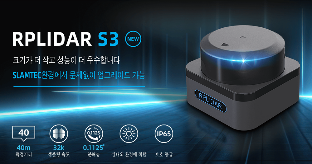 KC인증 슬램텍 RPLiDAR S3 360도 SL-ToF 라이다 센서 IP65 - 40m