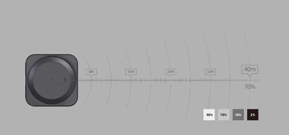 안정적으로 축소되지 않는 40m 측정70%의 반사율에서도 측정 반경은 안정적으로 40미터에 도달하여 중.장거리 측정오차를 만족합니다.