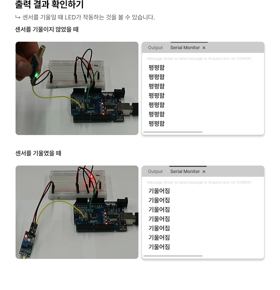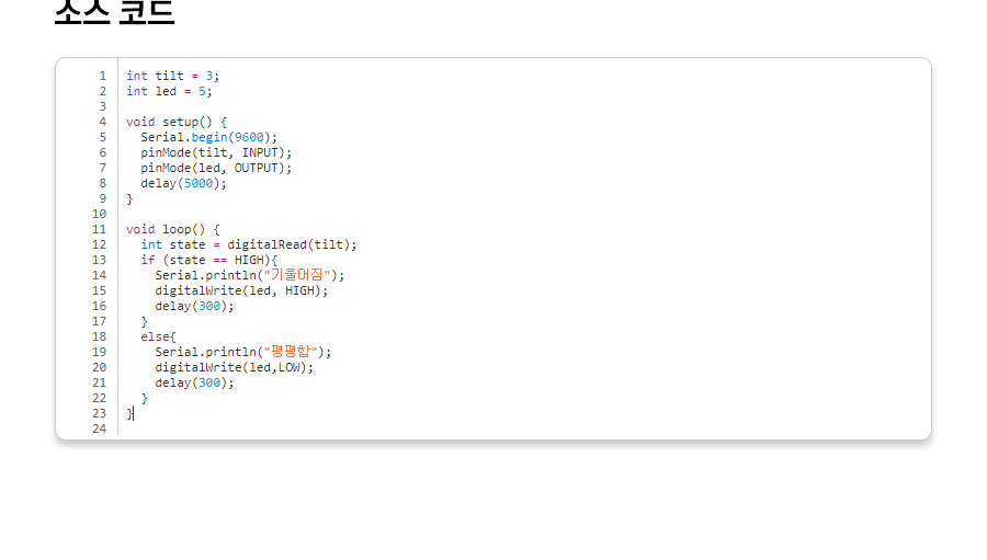 Serial.println("기울어짐");