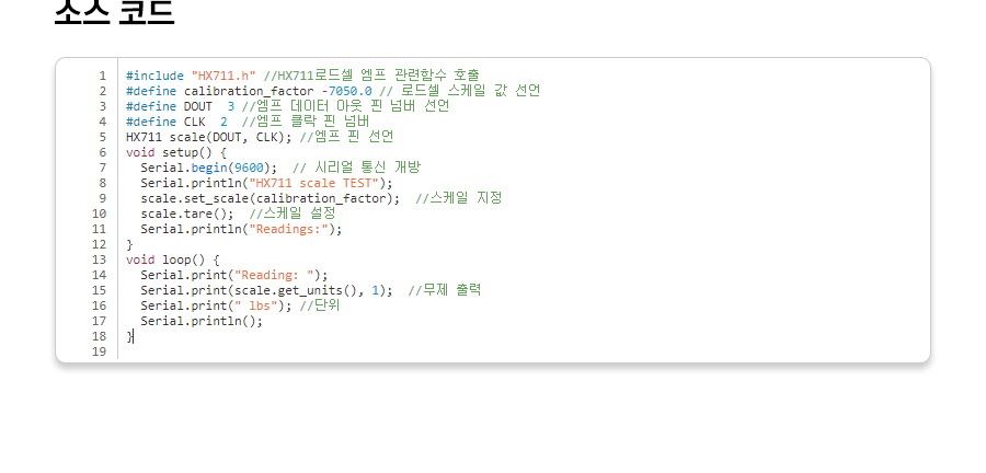 #include "HX711.h" //HX711로드셀 엠프 관련함수 호출