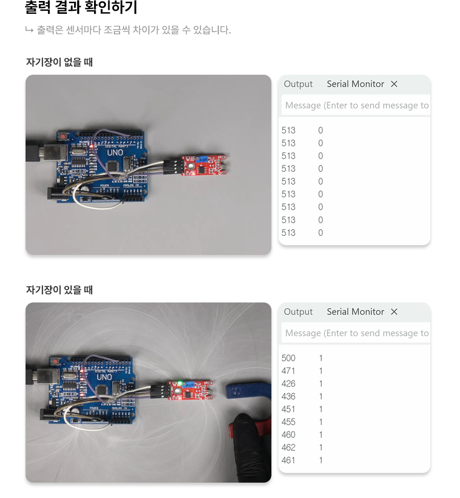 Serial.print(analogVal); // 아날로그 자기장값을 출력한다.