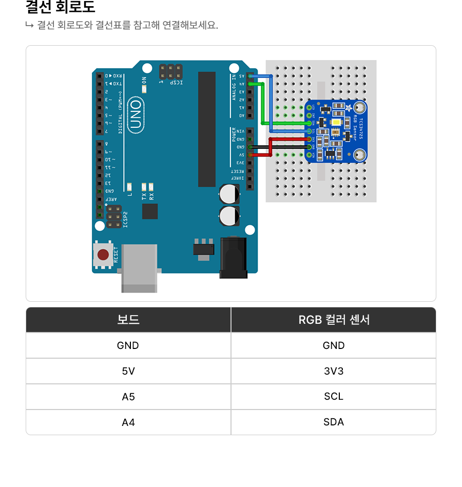 if (!TCS.begin()) { // TCS34725 센서가 인식되지 않는 경우