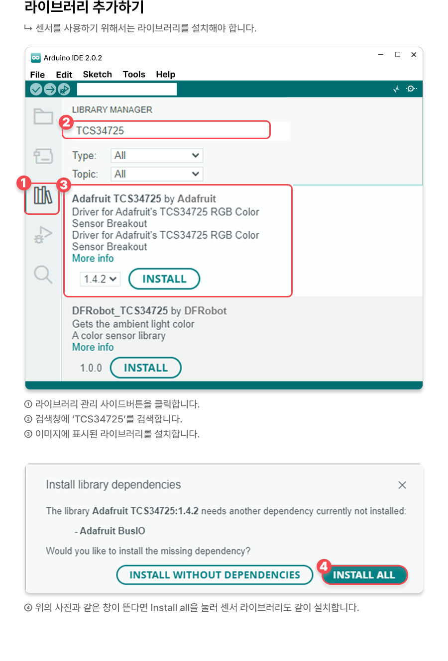 // TCS34725 라이브러리 사용을 위한 객체 생성