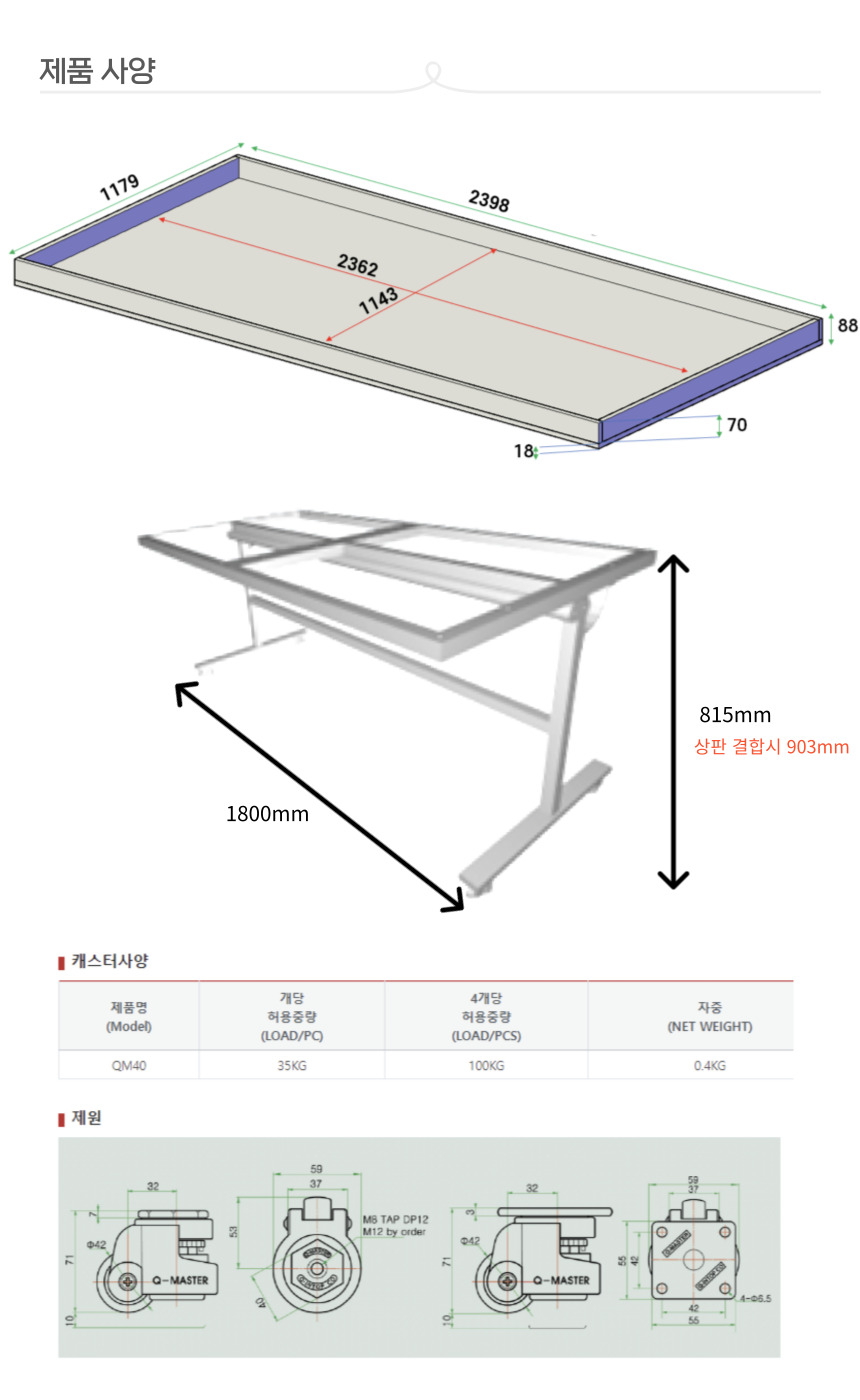 24년 7월 이후로 출고되는 제품은 전체높이가 기존 903mm -> 820mm로 낮게 제작되어 설치됩니다.