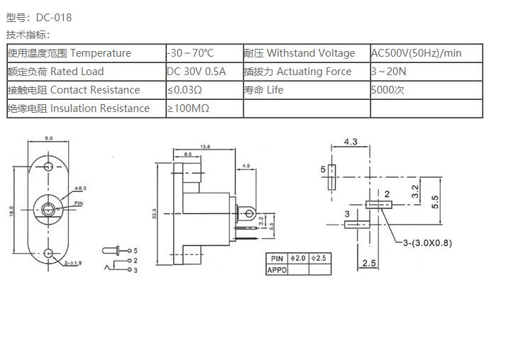 DC-018 전원 파워 디씨잭 2.0 mm DC잭 DC Jack