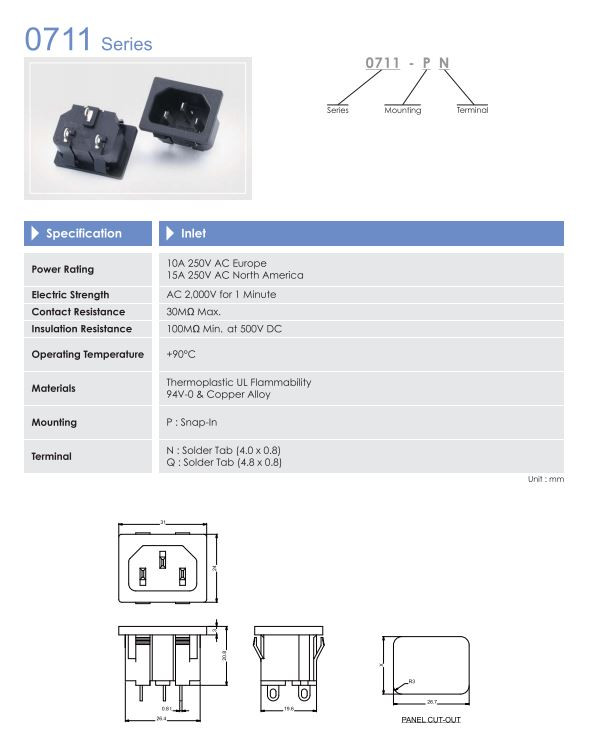 전원소켓 AC SOCKET INLET 커넥터 0711-PQ INALWAYS