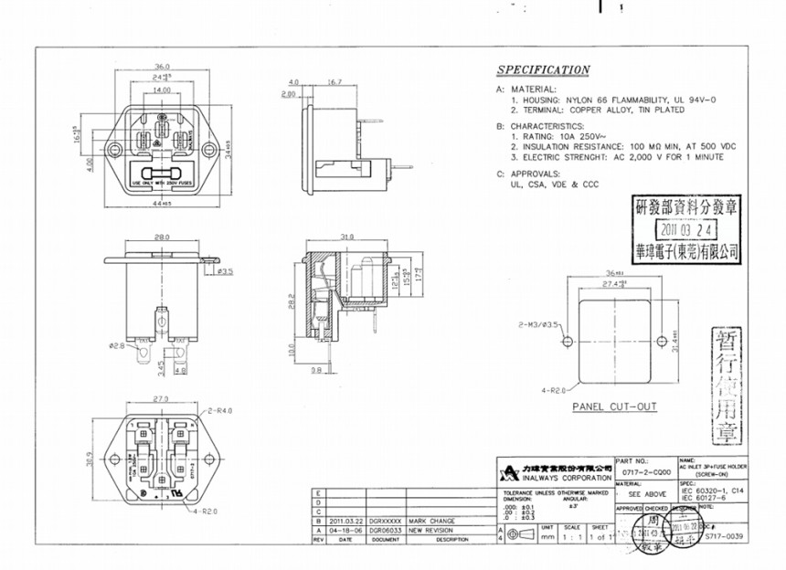 전원소켓 AC SOCKET INLET 커넥터 0717-2-PQ1.0 INALWAYS