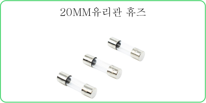 제품에 조립하여 사용하는 20 mm 유리관 휴즈 입니다.