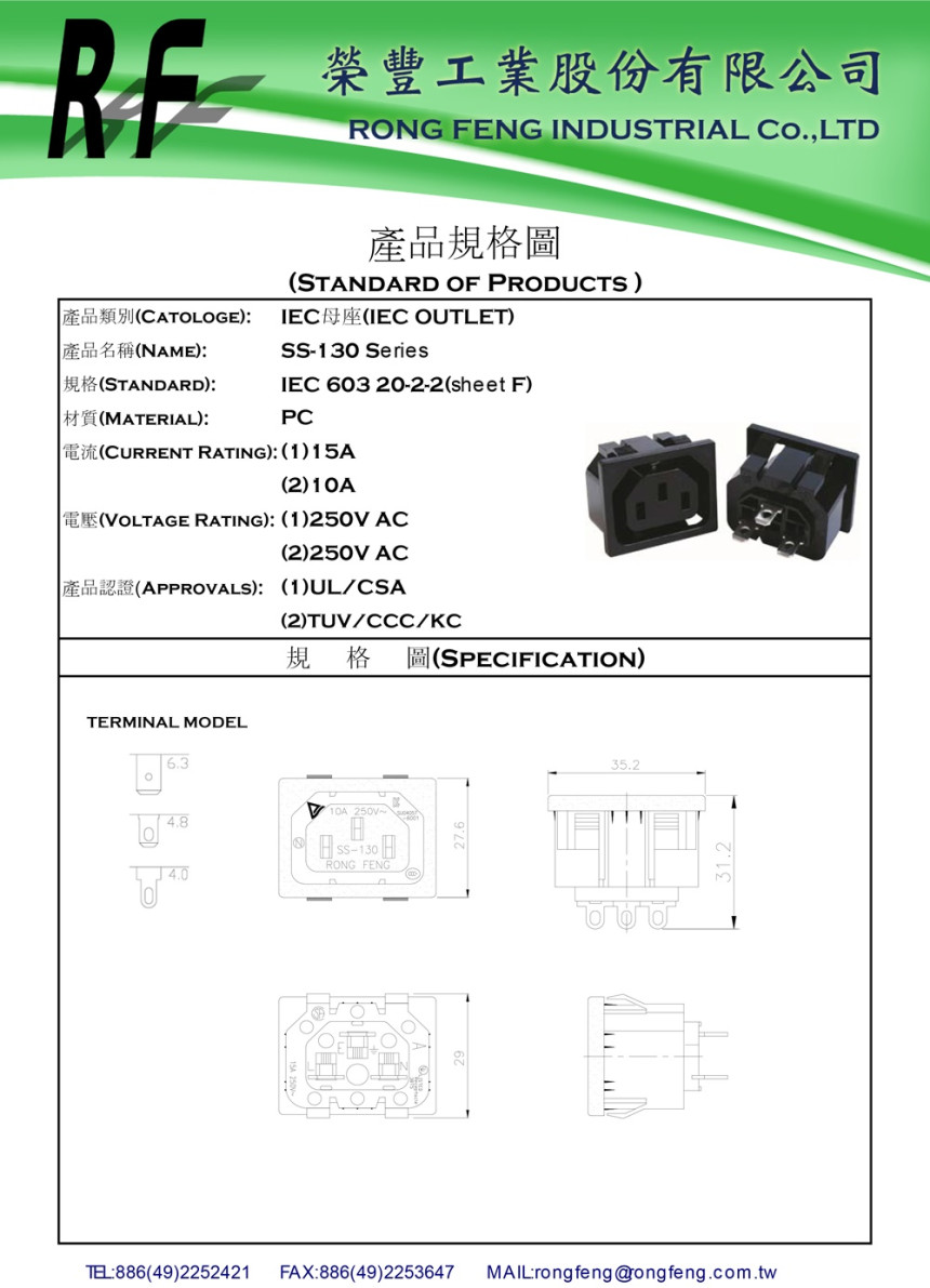 전원소켓 AC SOCKET OUTLET 커넥터 SS-130 RONGFENG