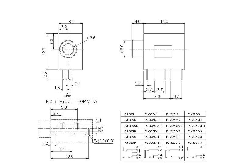 PJ-325M 스테레오 3.5파이 폰잭 PHONE JACK 이어폰