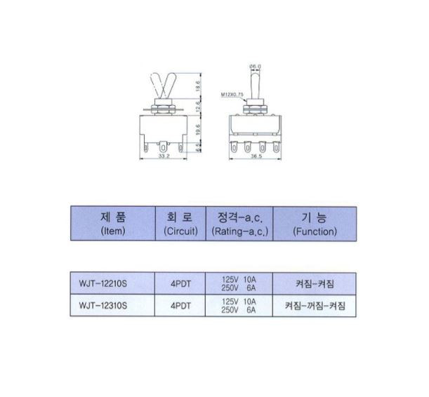WJT-12210S ON-ON 토글 TOGGLE 스위치 12파이 12P 우진전기