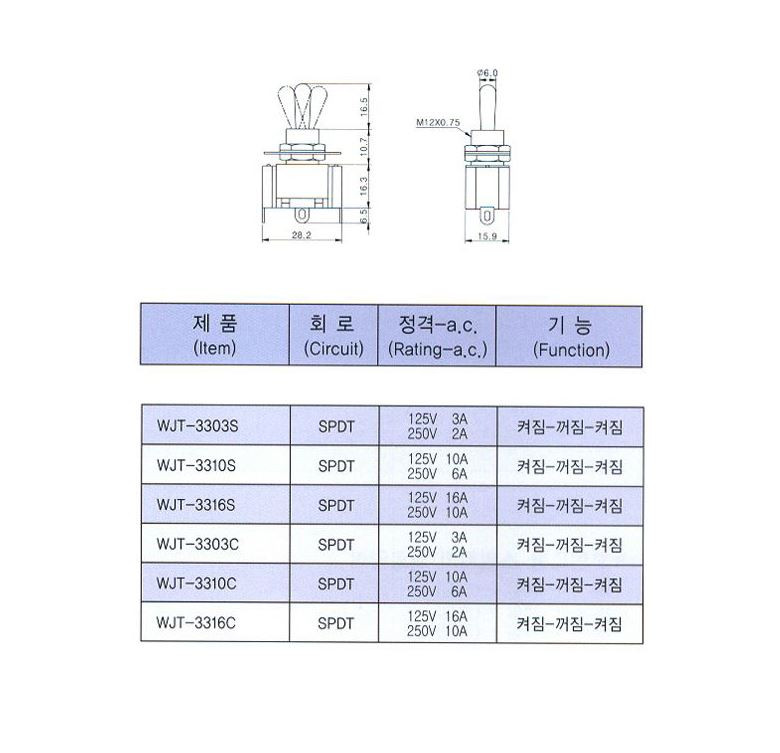 WJT-3303S ON-OFF-ON 토글 TOGGLE 스위치 12파이 3P 우진전기