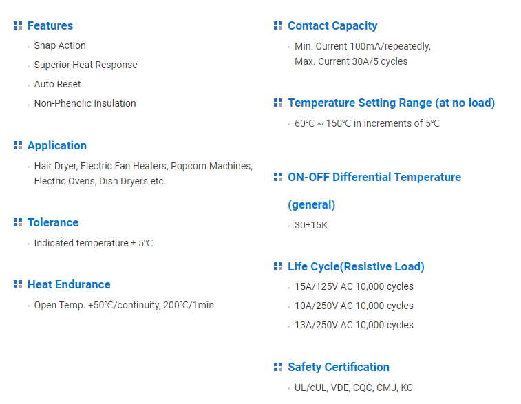 바이메탈 서모스텟 온도 스위치 퓨즈 bi metal , Thermostat 세기콘트롤 seki 동양전자 우성일렉스 thermik pepi