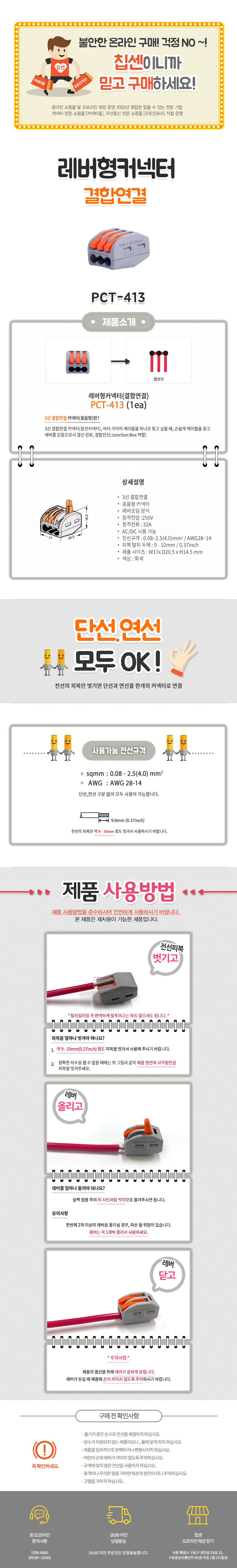 꽂음형커넥터 PCT-413(3선 결합연결) 전선규격:0.08~4.0mm²