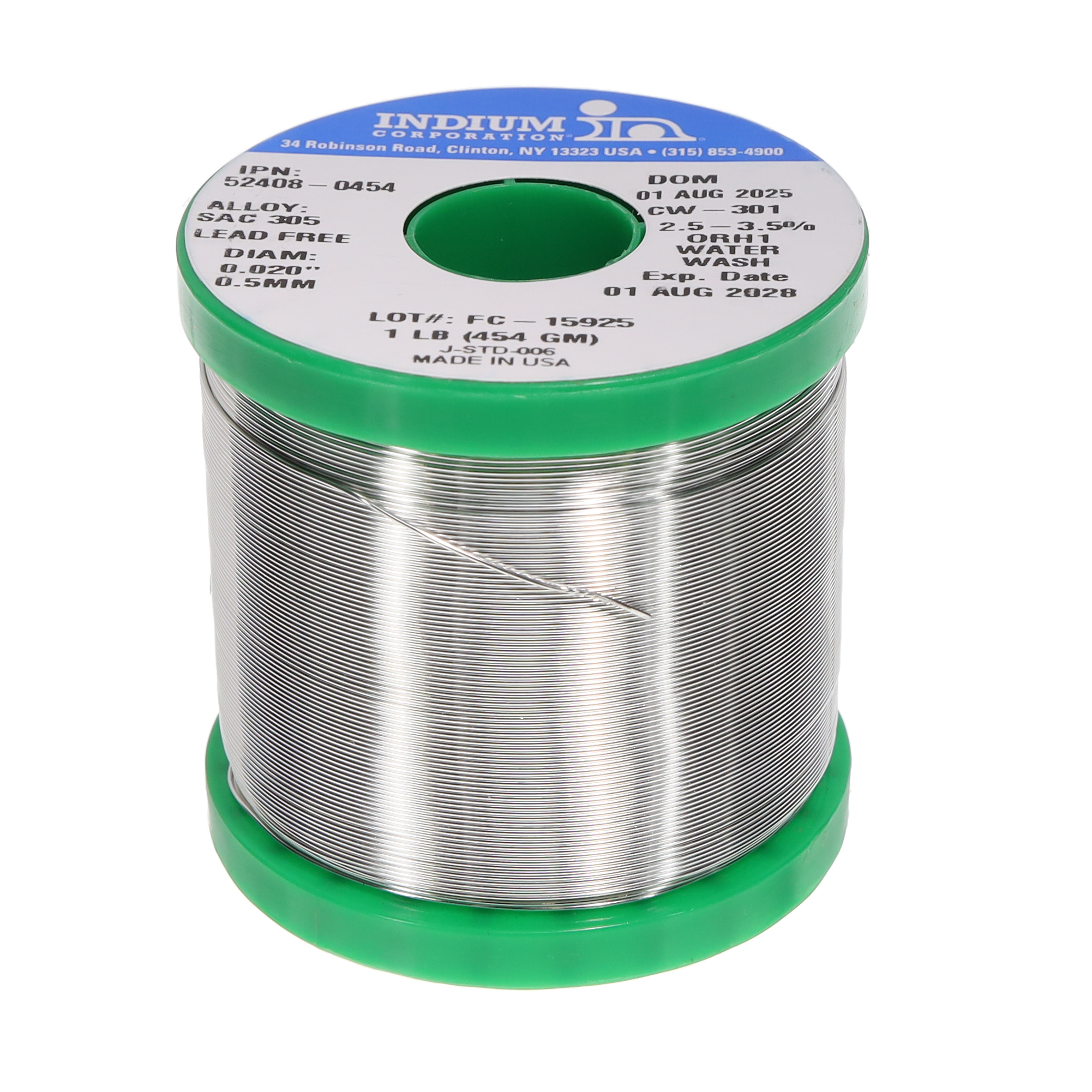 무연 수용성 와이어 솔더 Sn96.5Ag3Cu0.5(96.5/3/0.5) 16AWG, 18SWG 스풀, 1 lb(454g)