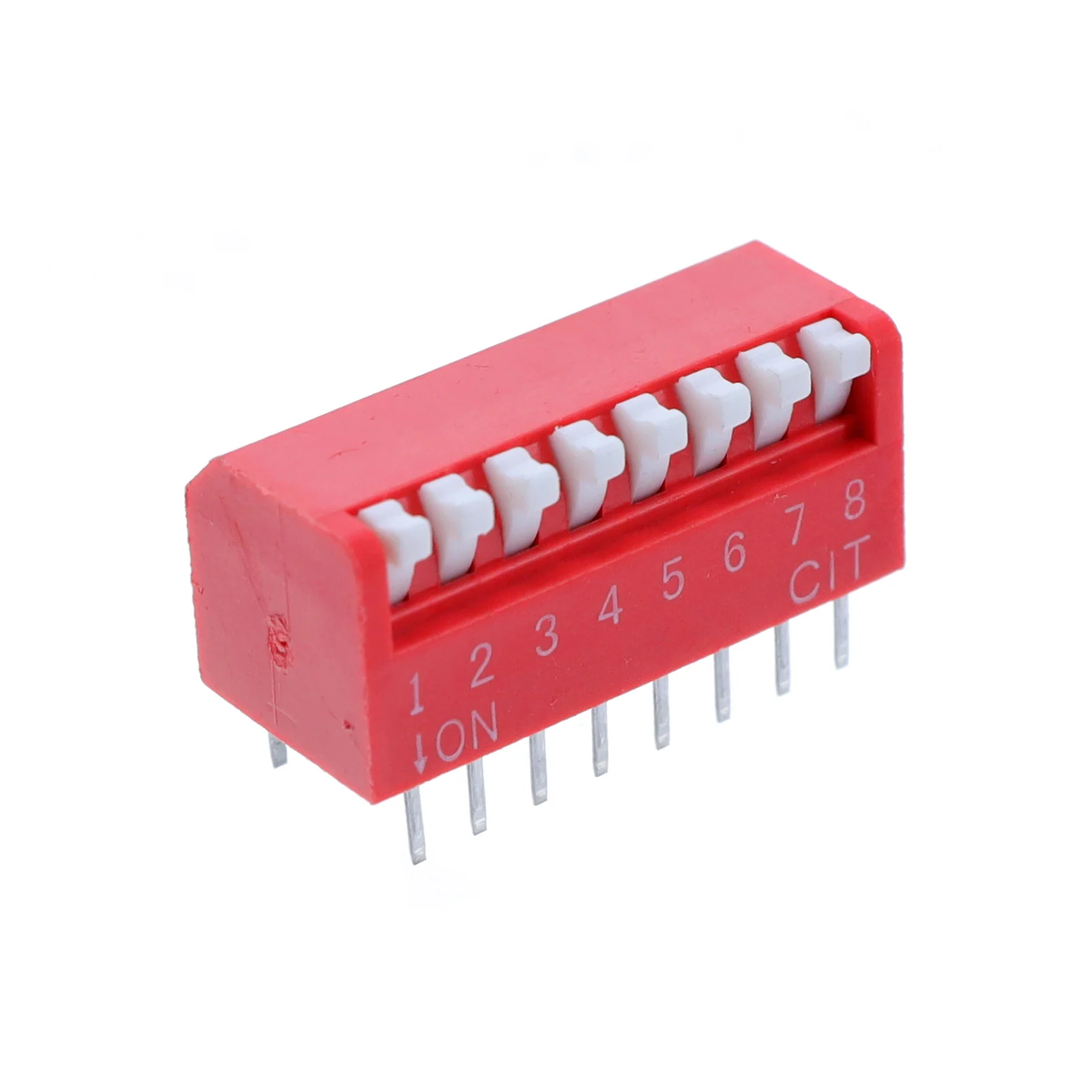 DIP 스위치 SPST 8 위치 스루홀, 직각 피아노 모양의 작동기 액추에이터 25mA 24VDC