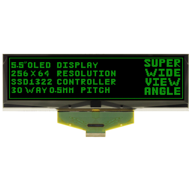 비접촉식 Graphic LCD Display Module 투과형 녹색 OLED - 수동 매트릭스 병렬, SPI 5.5"(139.70mm) 256 x 64
