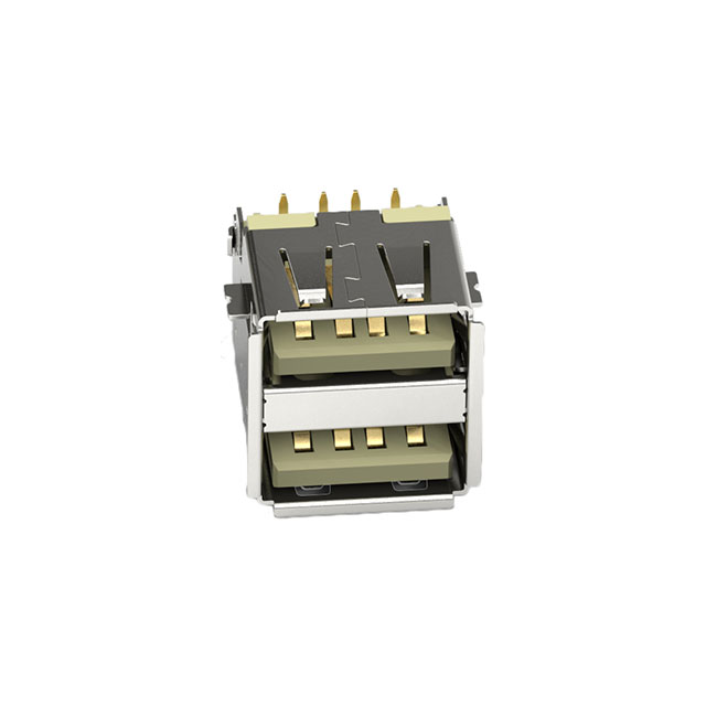 USB-A(USB A형), 스택형 USB 2.0 리셉터클 커넥터 8 접점 기판 에지, 컷아웃; 스루홀, 직각