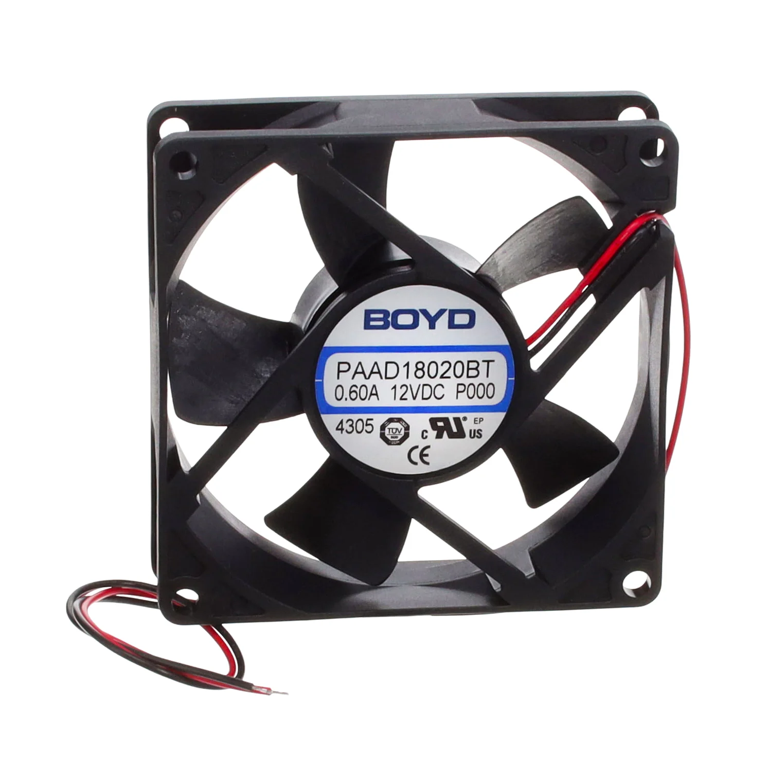 팬 튜브모양의 축 12VDC 정사각형 - 80mm L x 80mm H 볼 58.6 CFM(1.64m³/min) 2 와이어 리드