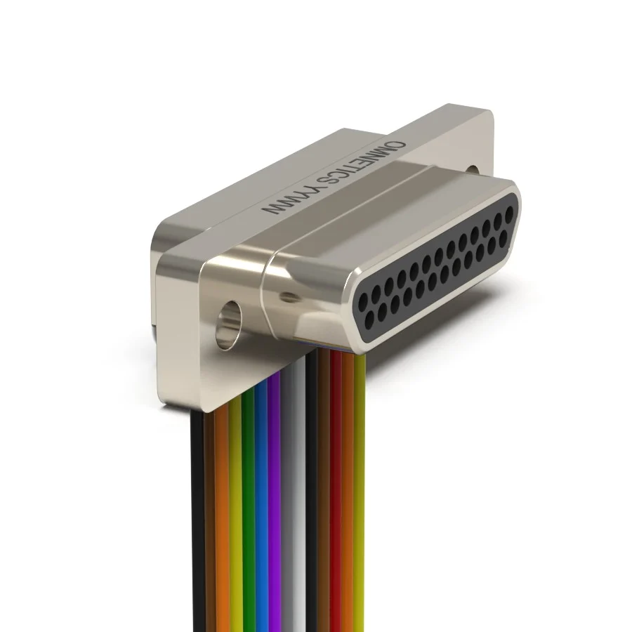 D 서브 케이블 조립품 D형, Micro-D 다중, 개별 1.50'(457.20mm) 수 핀 플러그, 직각 - 개별 와이어 리드(Lead) 비차폐