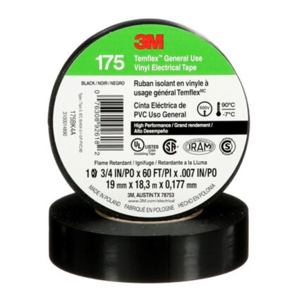 TAPE VINYL BLK 3/4"X20YDS