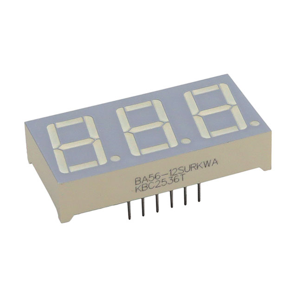 디스플레이 모듈 - LED 문자 및 숫자 빨간색 7-세그먼트 3 문자 공통 양극 1.95V 20mA 1.480" H x 0.748" W x 0.319" D(37.60mm x 19.00mm x 8.10mm) 12-DIP(0.600", 15.24mm)