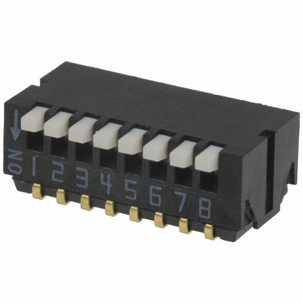 DIP 스위치 SPST 8 위치 표면 실장 직각 피아노 모양의 작동기 액추에이터 100mA 6VDC