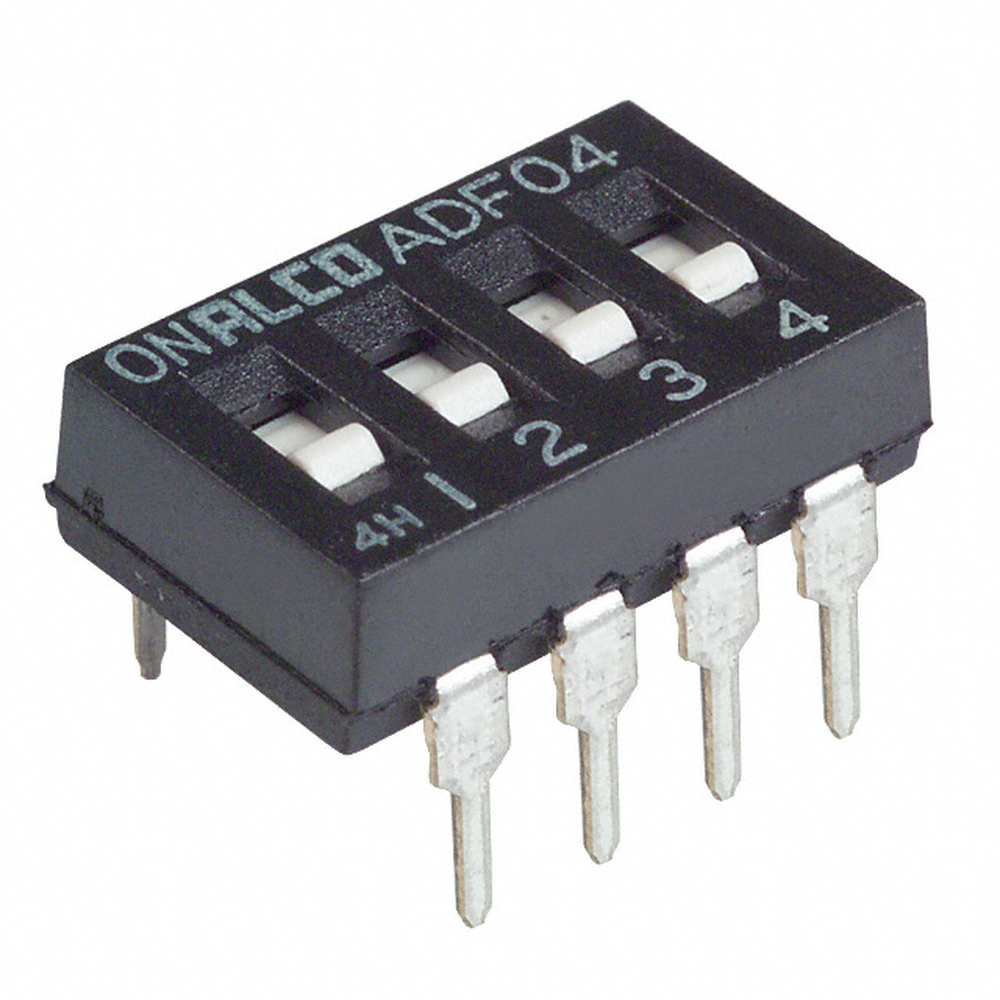DIP 스위치 SPST 4 위치 스루홀 슬라이드(표준) 액추에이터 25mA 24VDC