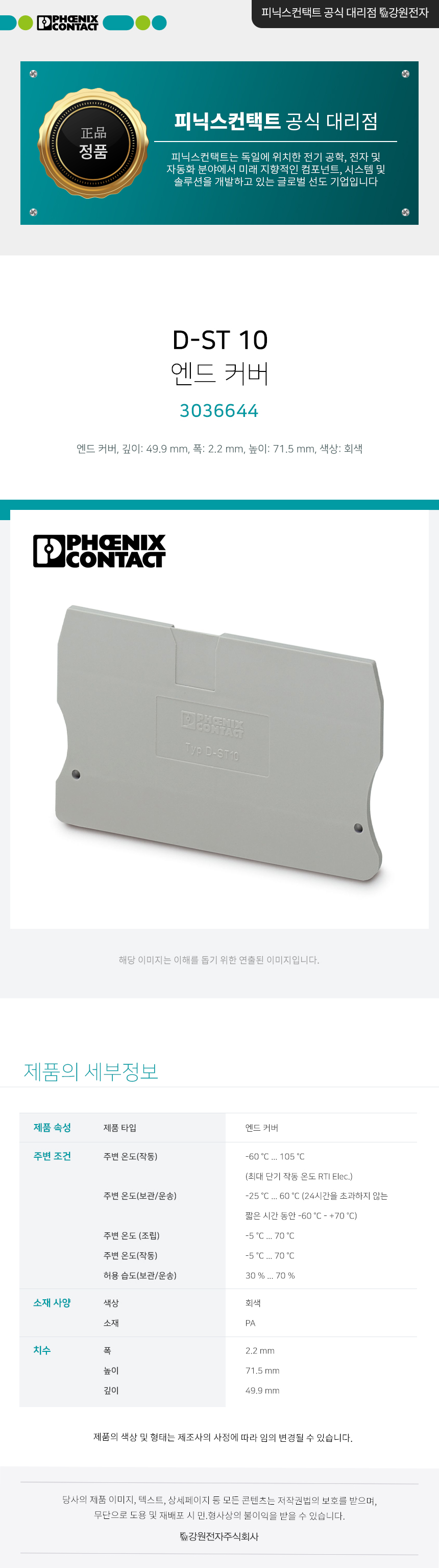 피닉스컨택트 D-ST 10 엔드 커버 3036644