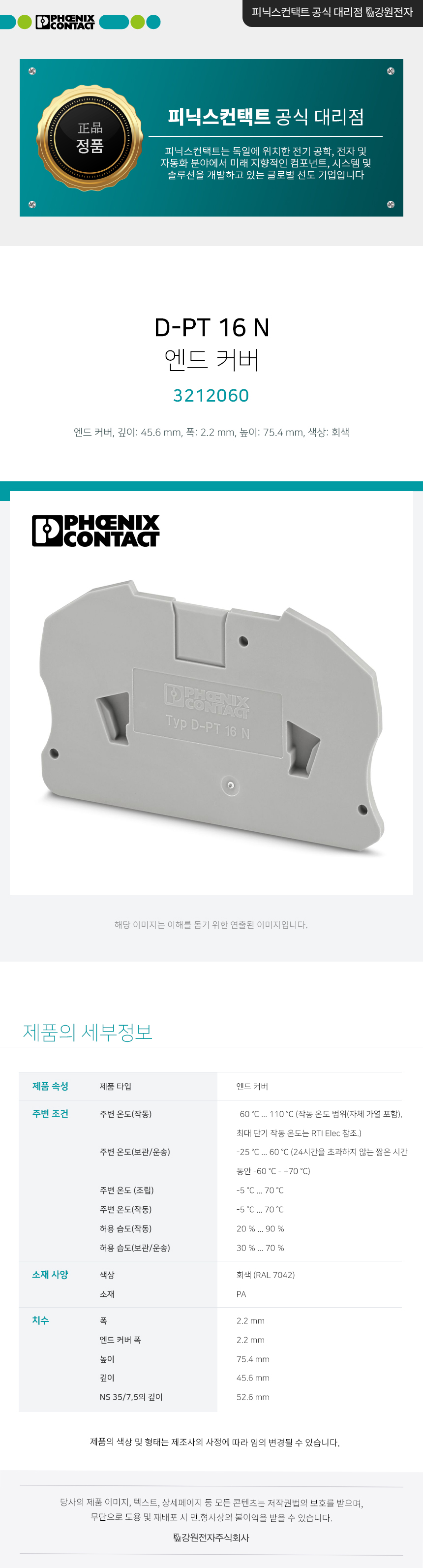피닉스컨택트 D-PT 16 N 엔드 커버 3212060