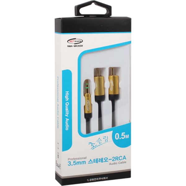 강원전자 넷메이트 초슬림 스테레오 to RCA 2선 케이블 0.5m (OFC/금도금/AUX 케이블) NMA-MK05SR