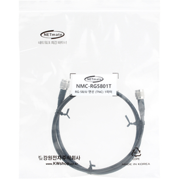 강원전자 넷메이트 RG-58 TNC-TNC 고주파 동축 케이블(주석도금 연동선/5합/50ohm) 1m NMC-RG5801T