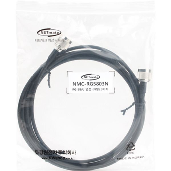 강원전자 넷메이트 RG-58 N형-N형 고주파 동축 케이블(주석도금 연동선/5합/50ohm) 3m NMC-RG5803N