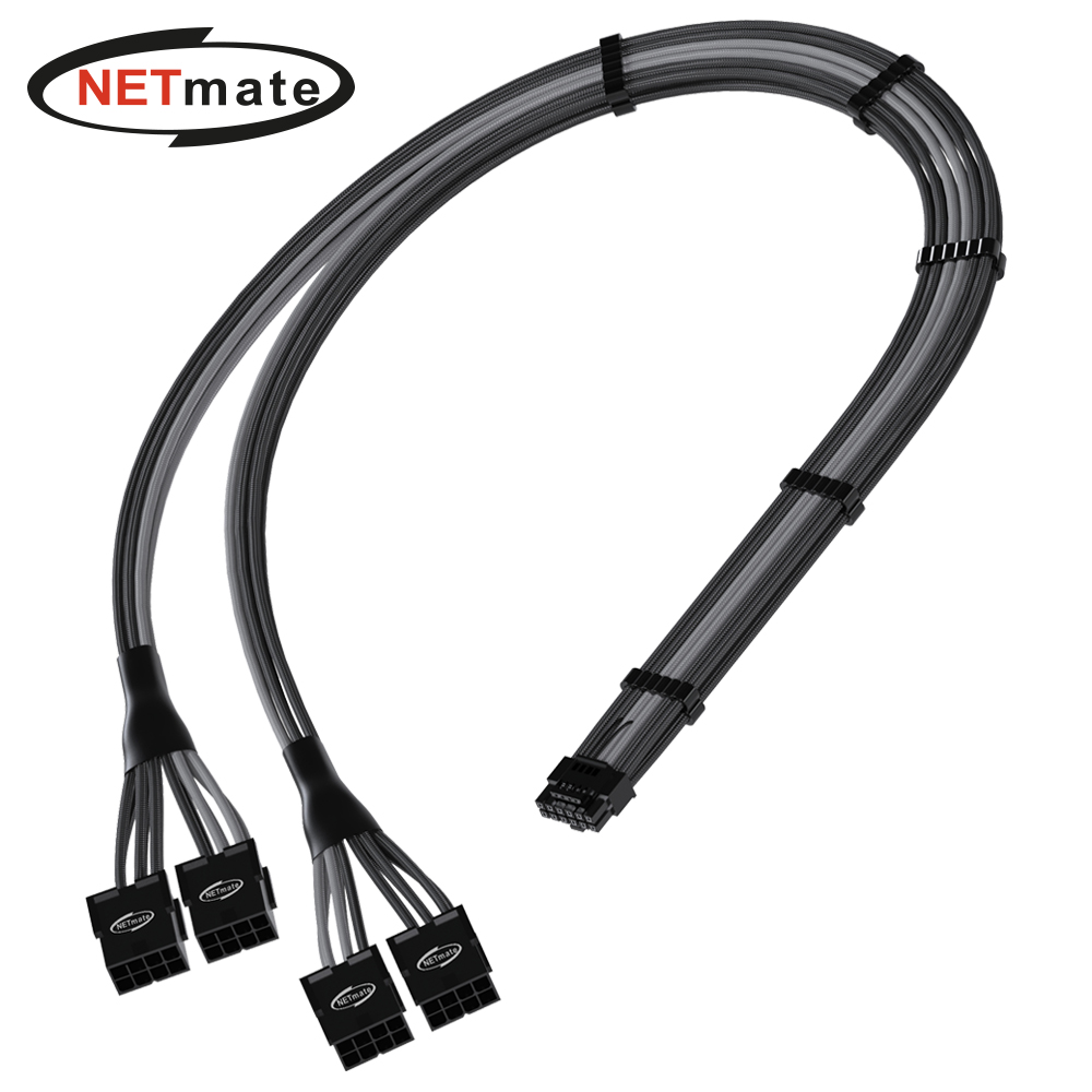 넷메이트 12VHPWR to PCI-E 8핀x4 변환 슬리빙 케이블 0.45m (블랙/그레이) [EZDIY-FAB]