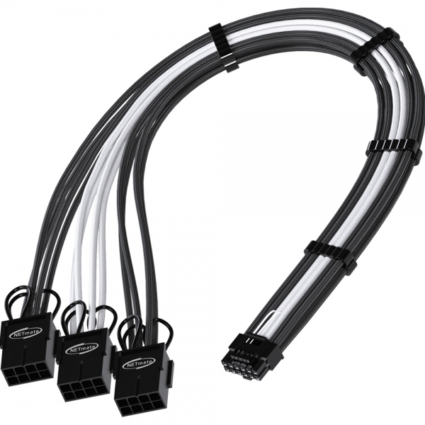 넷메이트 12VHPWR to PCI-E 8핀x3 변환 슬리빙 케이블 0.3m (블랙/화이트) [EZDIY-FAB]