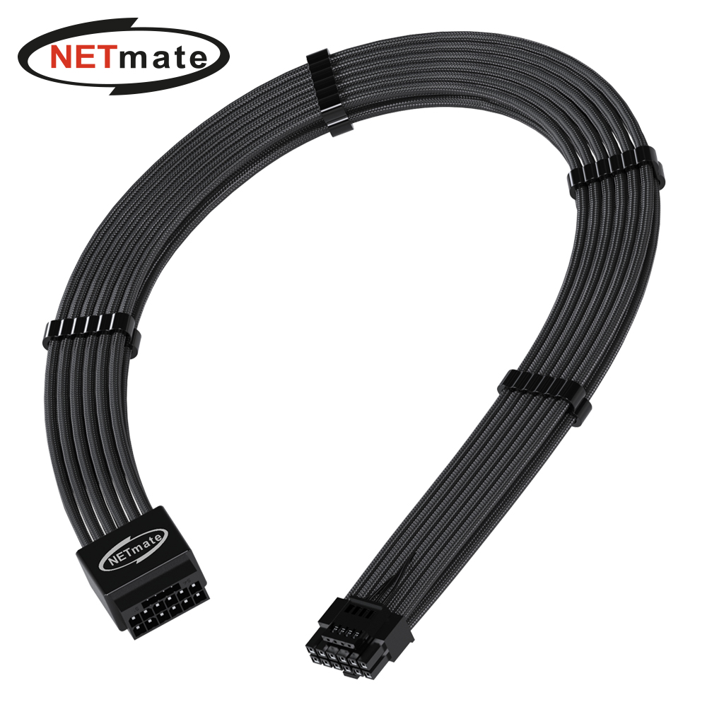 넷메이트 PCI-E 5.0 12VHPWR 연장 슬리빙 케이블 0.3m (블랙) [EZDIY-FAB]