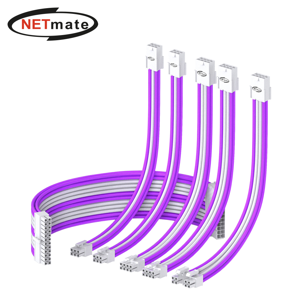 넷메이트 PSU 연장 16AWG 슬리빙 케이블 0.3m (화이트/퍼플 6종) [EZDIY-FAB]