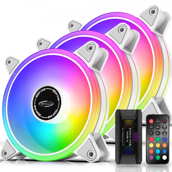 넷메이트 Moonlight ARGB 120mm 쿨링팬(화이트/3PACK + 팬허브 + 리모컨) [EZDIY-FAB]