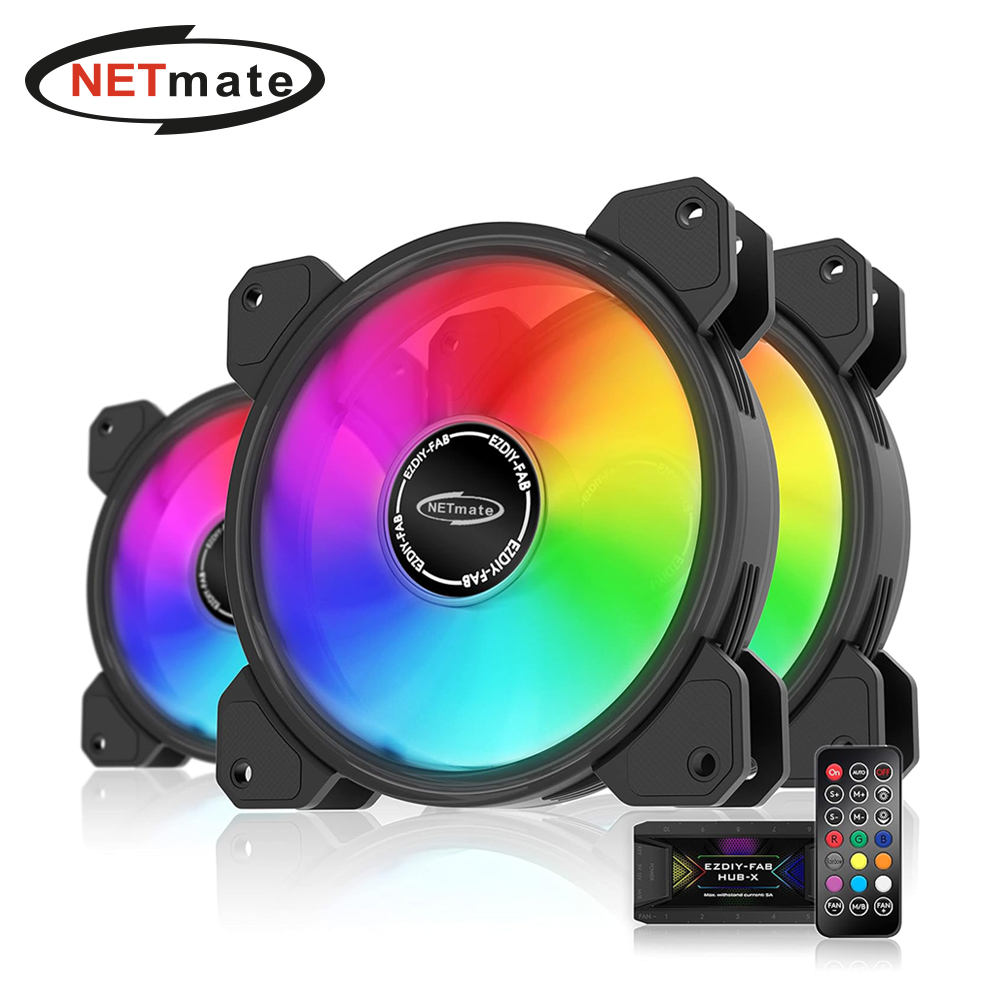 강원전자 넷메이트 Inner Ring ARGB 120mm 쿨링팬(블랙/3PACK + 팬허브 + 리모컨) [EZDIY-FAB] NM-DPR04415