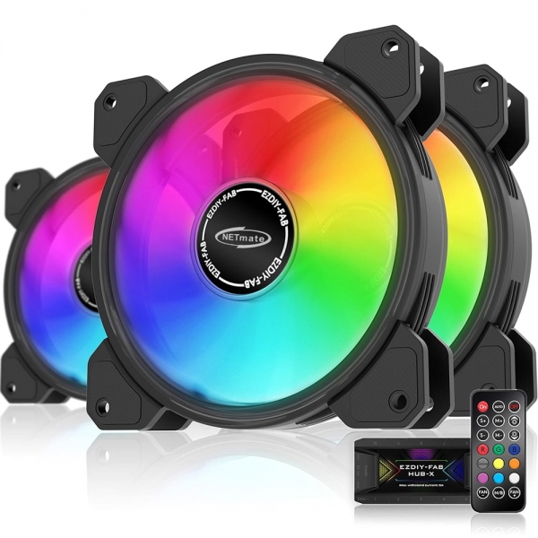 넷메이트 Inner Ring ARGB 120mm 쿨링팬(블랙/3PACK + 팬허브 + 리모컨) [EZDIY-FAB]