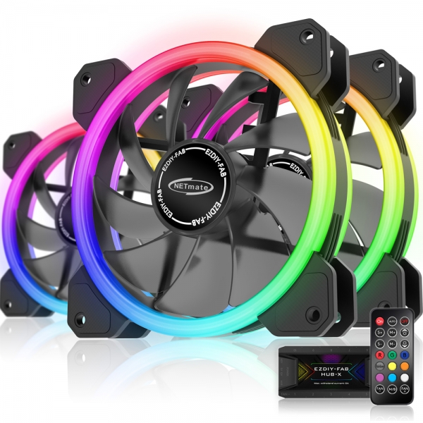 넷메이트 Dual Ring ARGB 120mm 쿨링팬(블랙/3PACK + 팬허브 + 리모컨) [EZDIY-FAB]