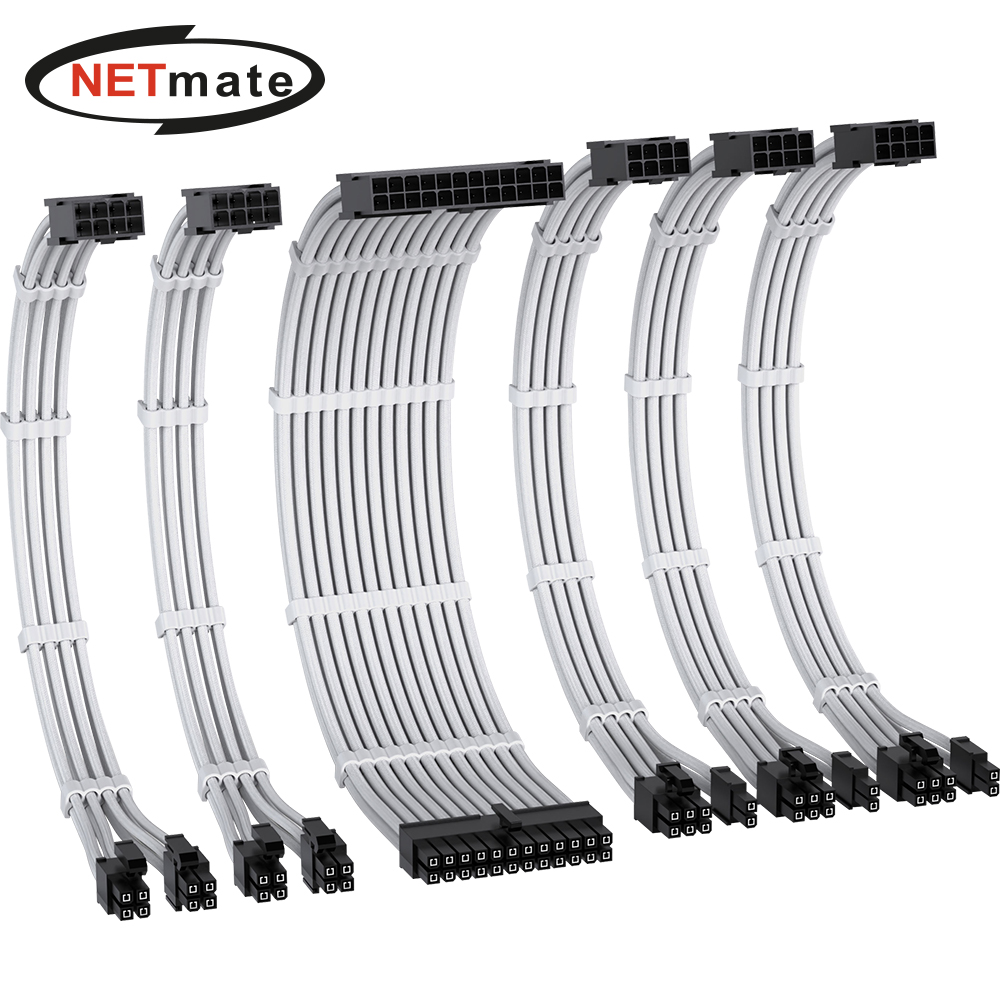넷메이트 PSU 연장 16AWG 슬리빙 케이블 세트 (화이트 6종) [EZDIY-FAB]