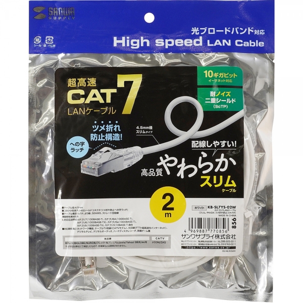 강원전자 산와서플라이 CAT.7 SSTP Flexible Slim 랜 케이블 2m (화이트) KB-SL7YS-02W