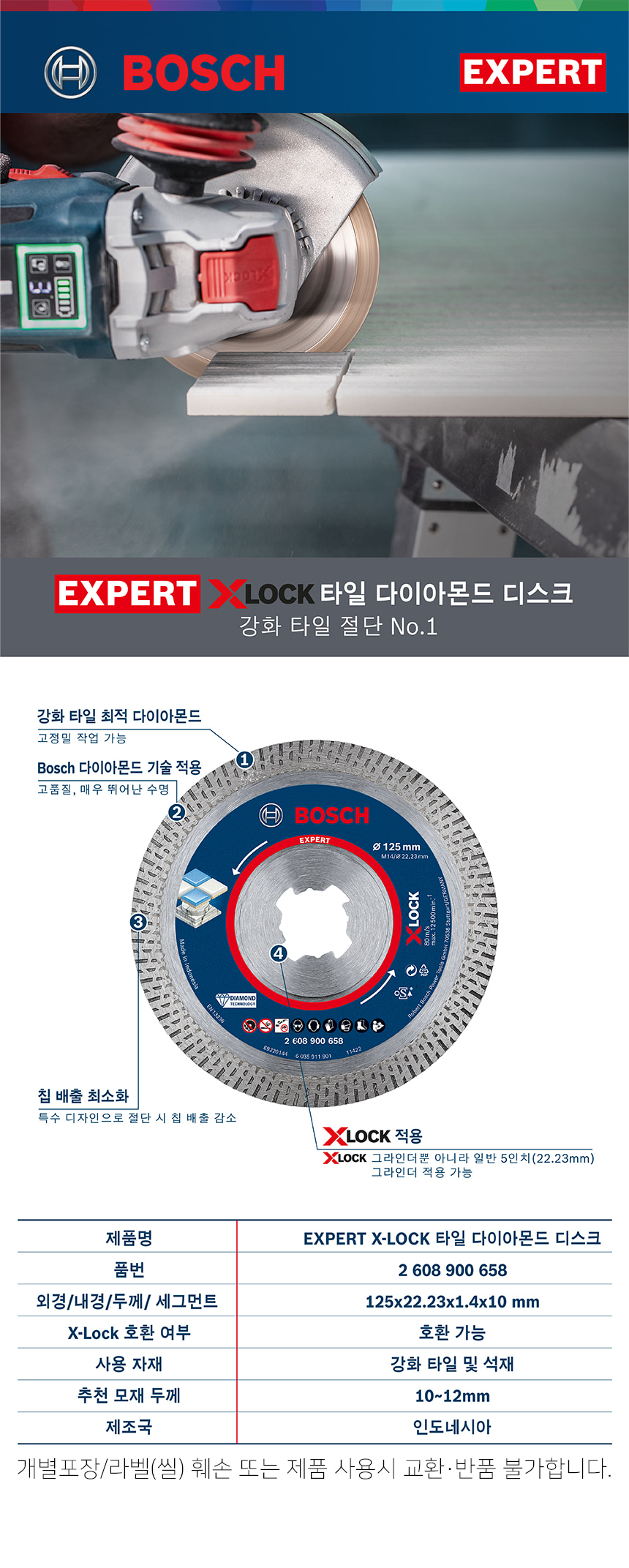 보쉬 EXPERT XLOCK 전용 타일 다이아몬드 컷팅 디스크 2608900658 절단석 그라인더날
