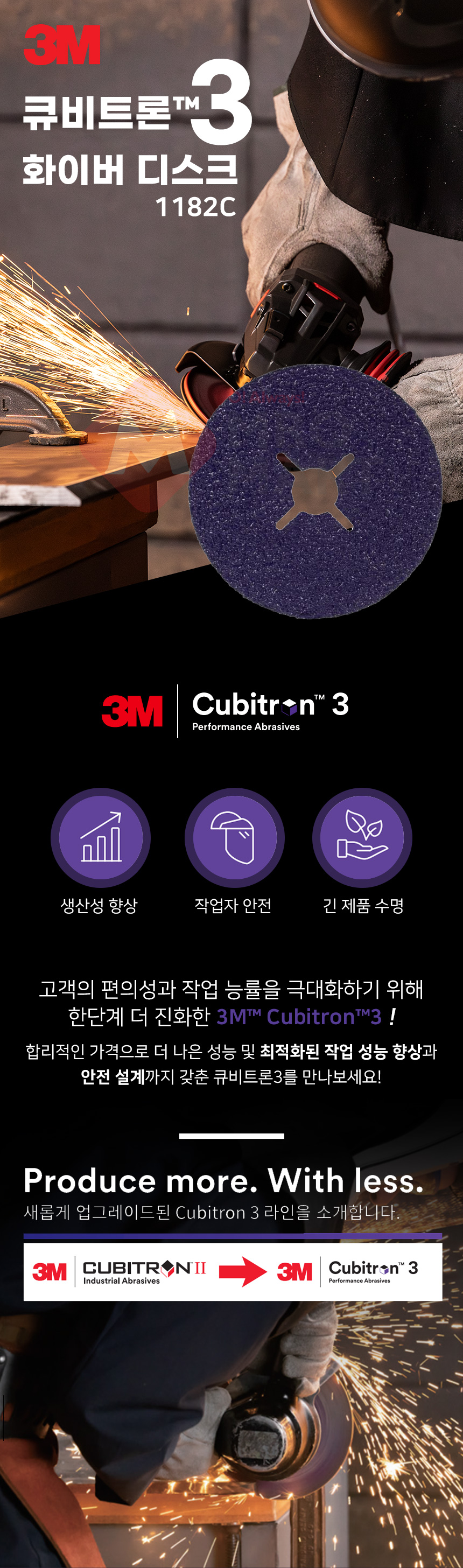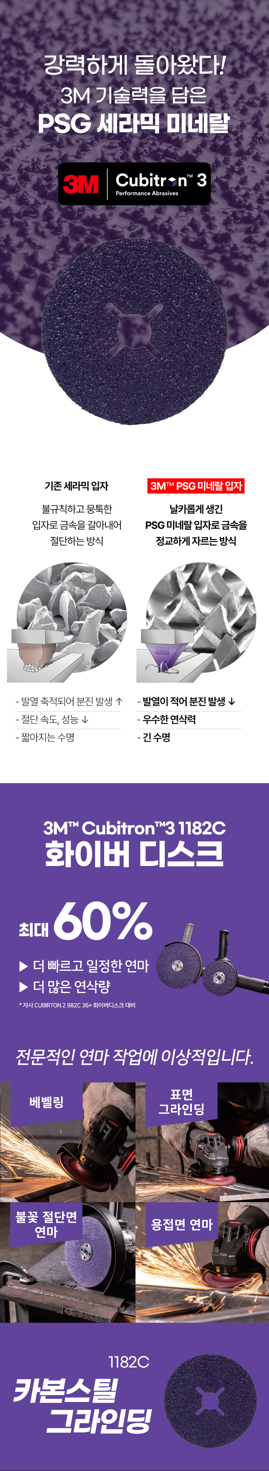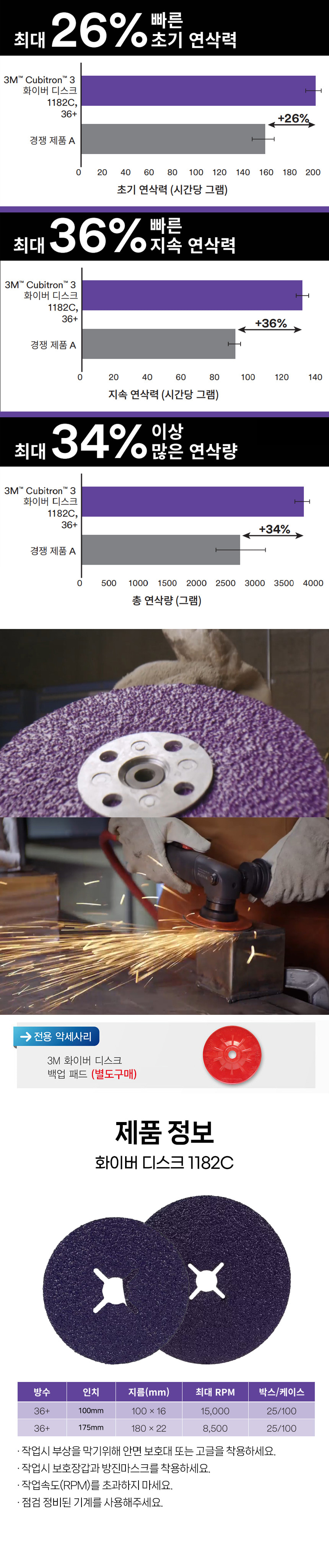 3M 큐비트론3 화이버 디스크 4인치 1182C 36방 그라인더날 페파 사포 연마 스틸 그라인딩