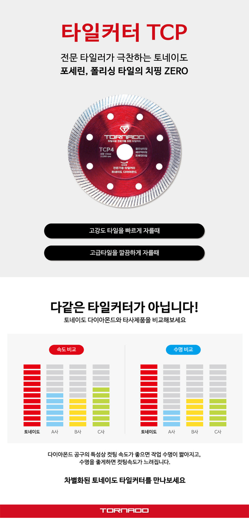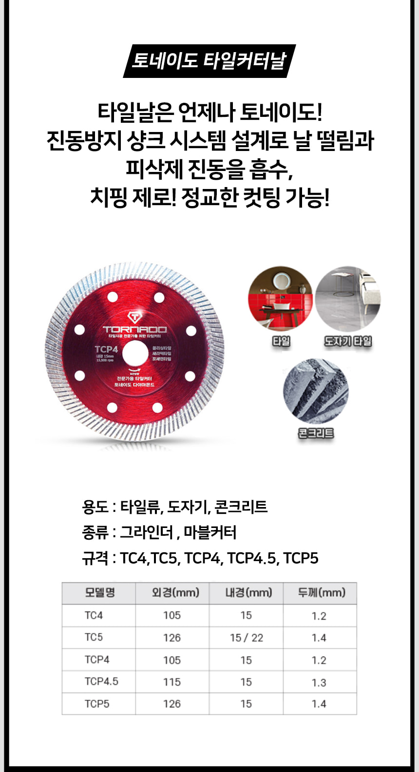 토네이도 TCP4 다이아몬드 타일 커터날 4인치 타일류 도자기 콘크리트 절단석 그라인더날