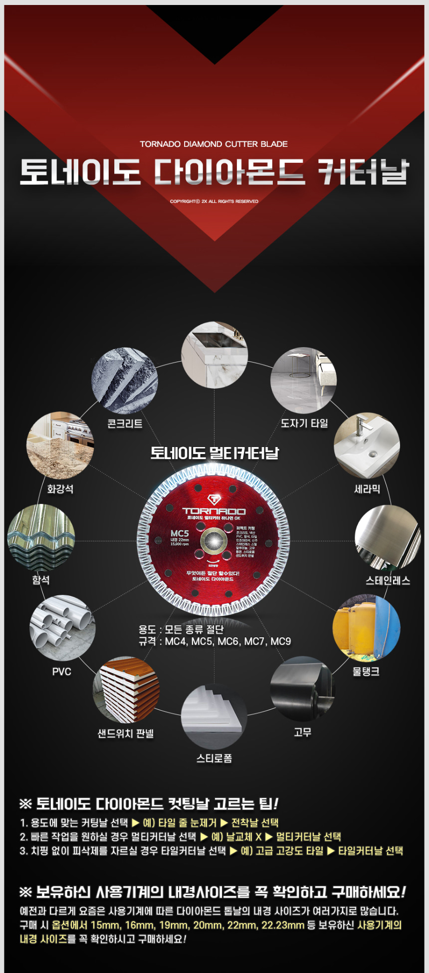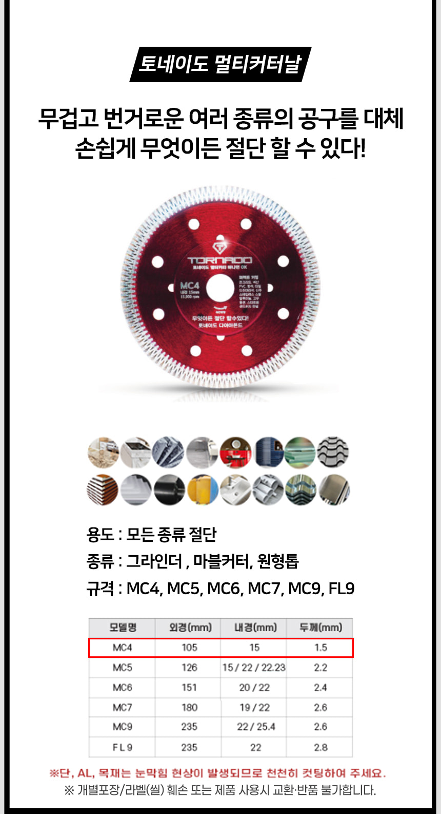 토네이도 MC4 멀티 커터날 4인치 절단석 그라인더날 타일 금속 나무