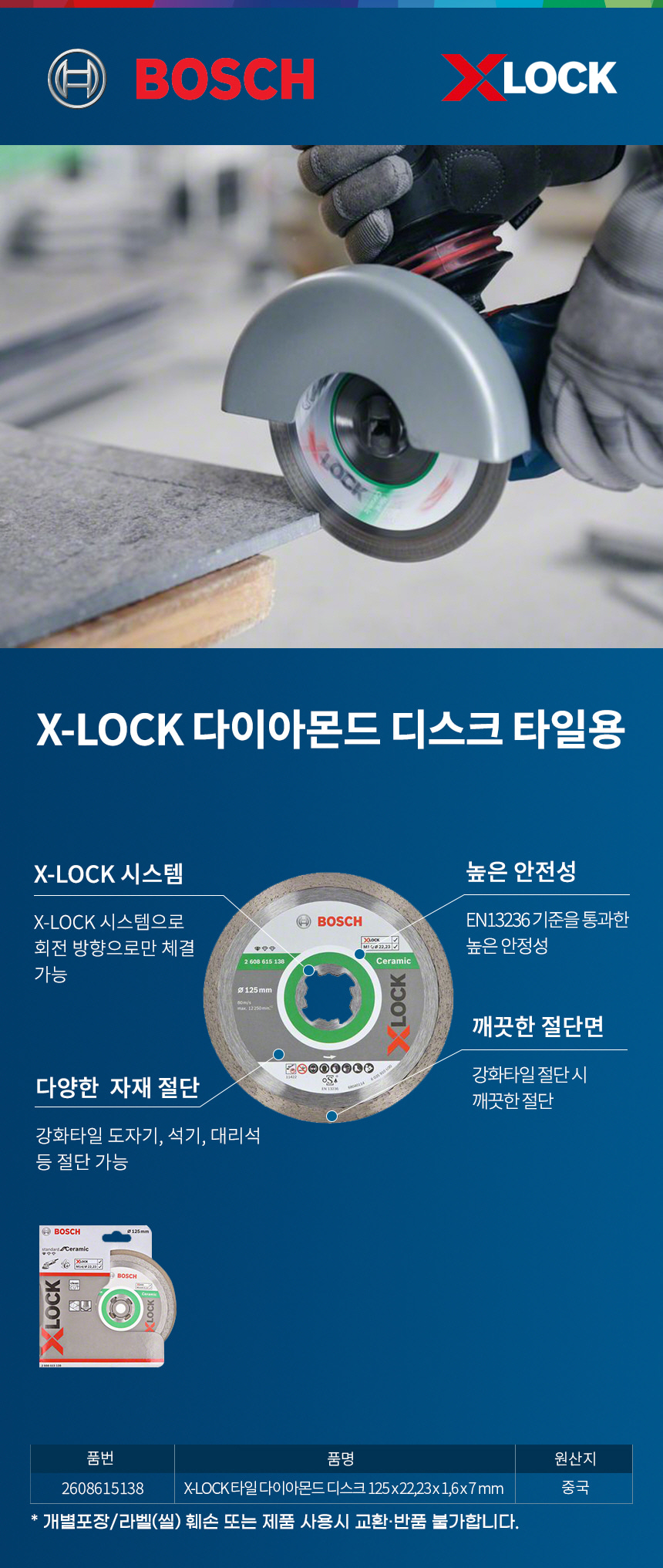 보쉬 XLOCK 전용 5인치 다이아몬드 디스크 2608615138 절단석 그라인더날 컷팅날 타일 대리석